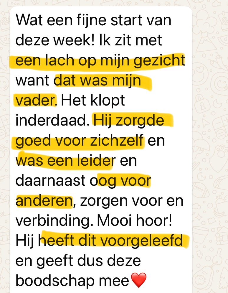 De geboortedatum vertelt over de zielsmissie, de sterfdatum over de voltooiing van het levenspad. Samen geven ze inzicht in wat jouw dierbare je wil meegeven nu jij verder mag gaan.